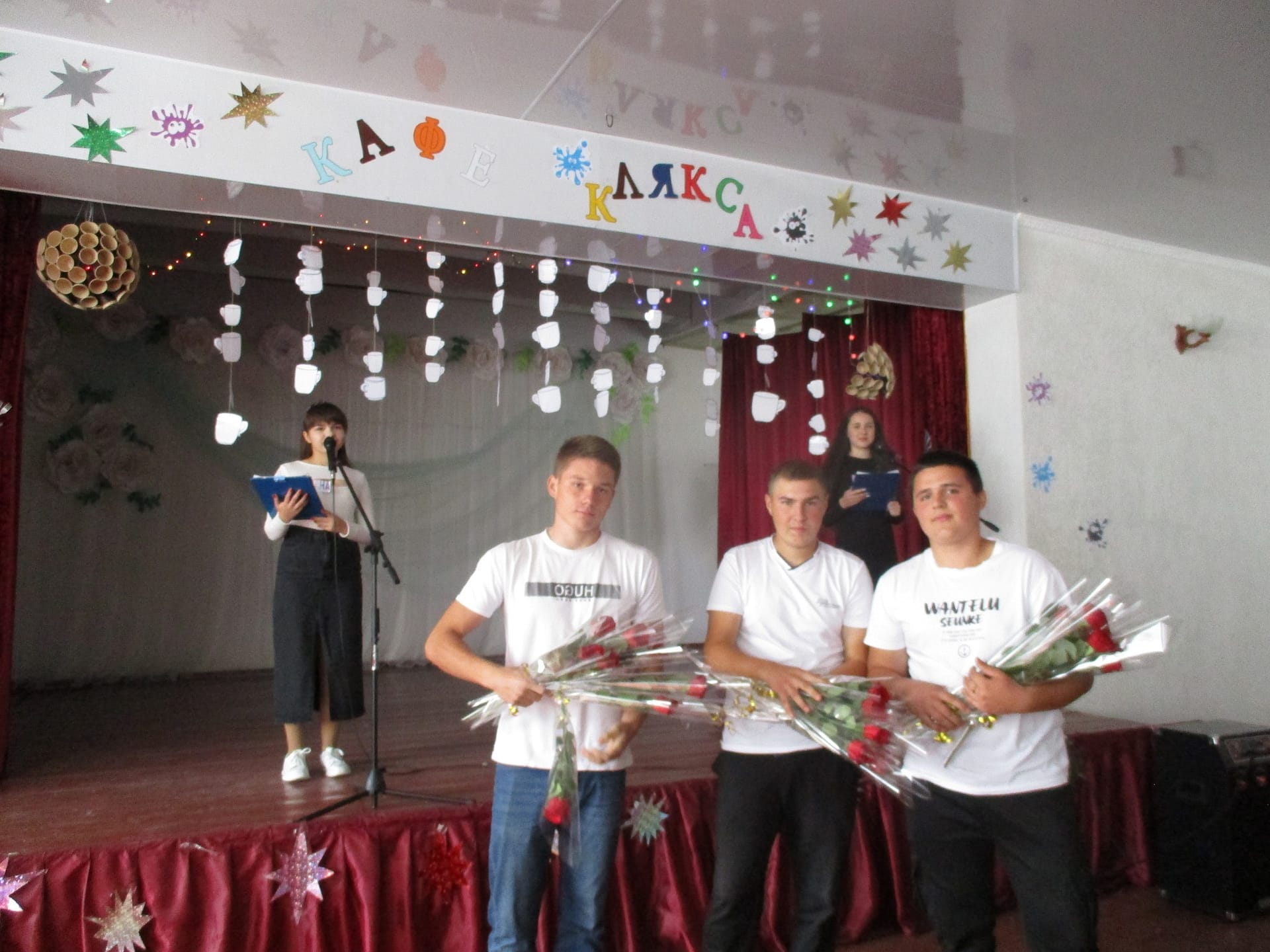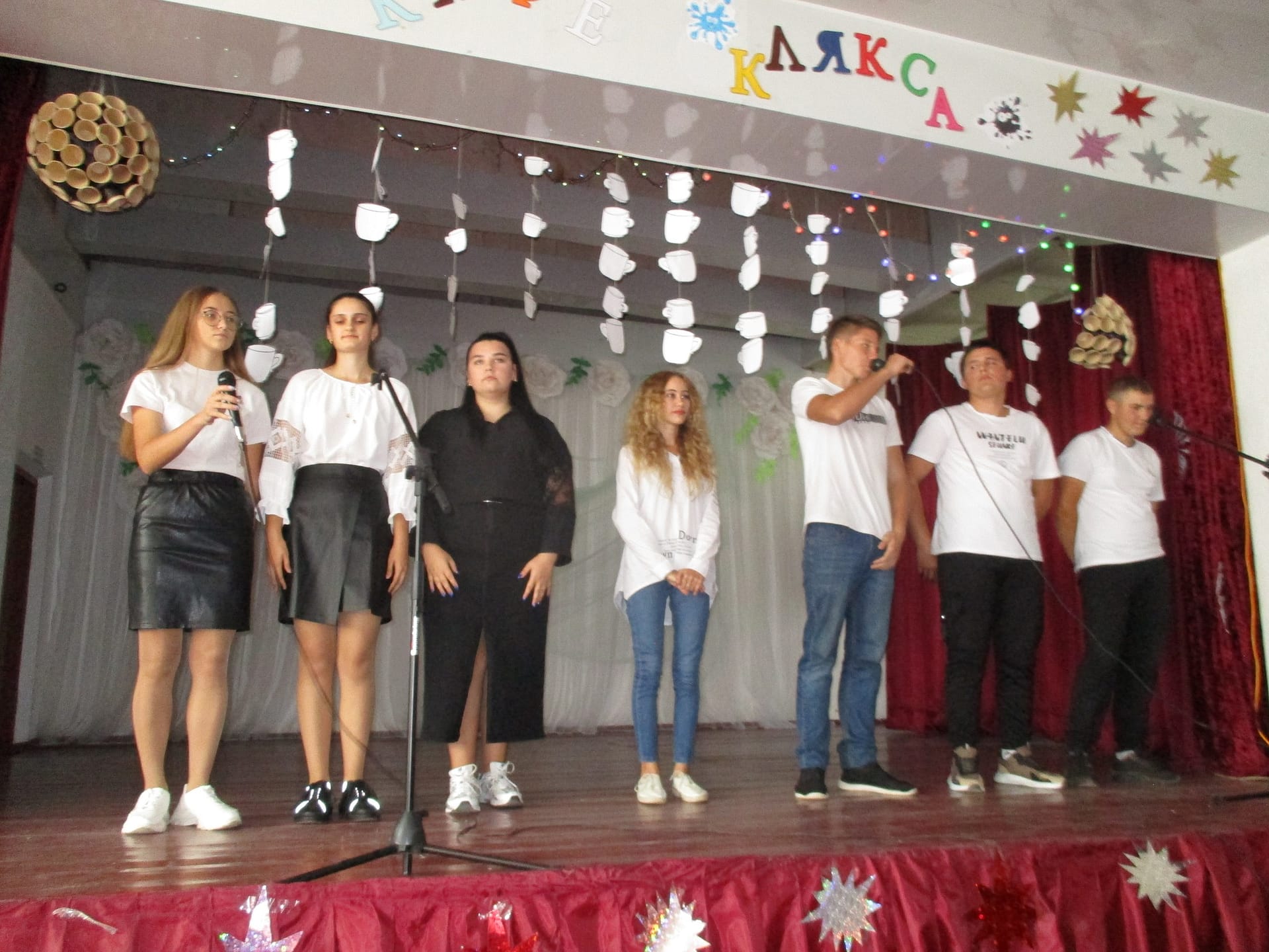 5 жовтня щороку весь світ відзначає Міжнародний день вчителя. Одинадцятикласники разом з педагогом-організатором Черняк С. Л. та класним керівником Каленюком В. М. підготували яскраву святкову програму. До святкового кафе “Клякса” завітали усі педагогічні працівники ліцею. В меню кафе були різні страви – напої “Першокласний”, “Вчительський”,перші страви – борщ “Знову двійка”, суп “Сучасні ритми”, солянка “Наша вчителька”, асорті “Тисячі думок за один урок”, на десерт – тістечко “Вчительська дума”, желе “Оновлення”, торт “Міфічні руїни” та багато іншого. В ході свята вчителі брали участь в лотереї, ознайомились з пам’яткою для вчителів, виявляли в конкурсах логічне мислення, побували на уроці 2030 року, зробили розминку на фізкультхвилинці, а також отримали передбачення майбутнього від циганки- ворожки. Зі свята всі розходились з емоційним піднесенням та радісним настроєм.